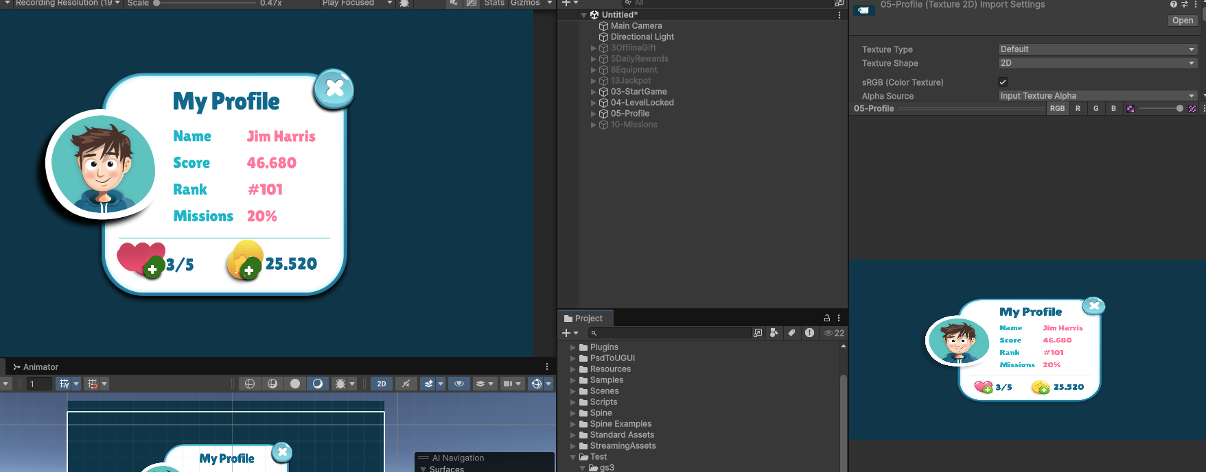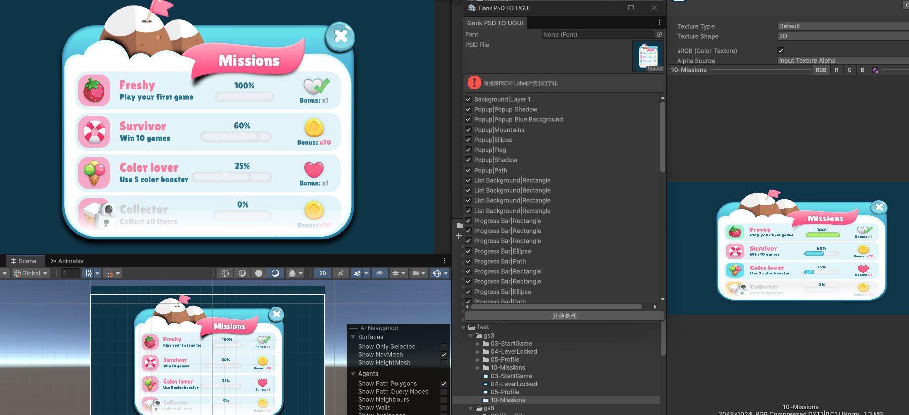 這組資源的 PSD 結構相對乾淨,轉換出來的 Prefab 幾乎不需要手動調整。